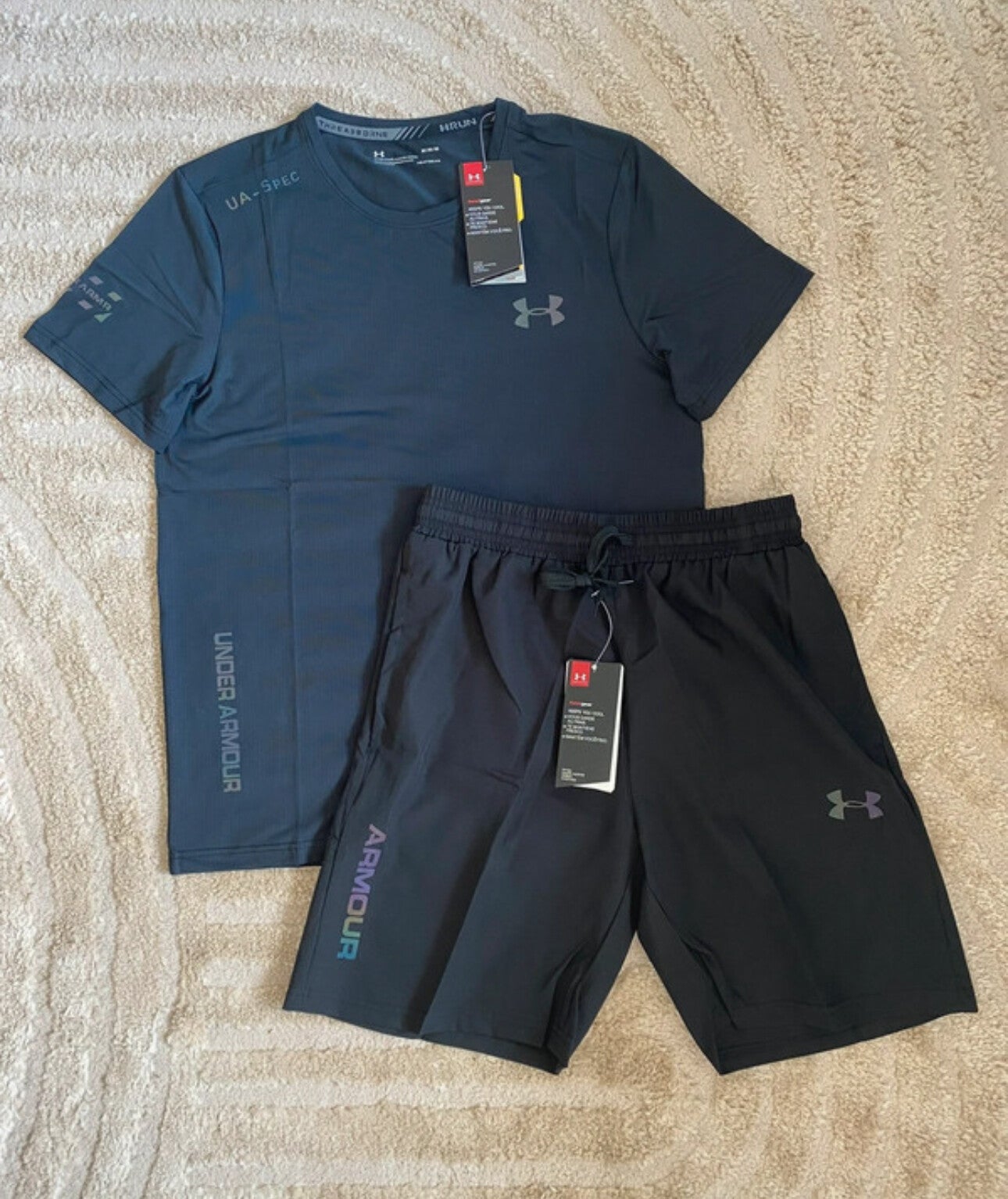 Onze under armour set in het kleur zwart is van een hele hoge kwaliteit gemaakt voor een betaalbare prijs.